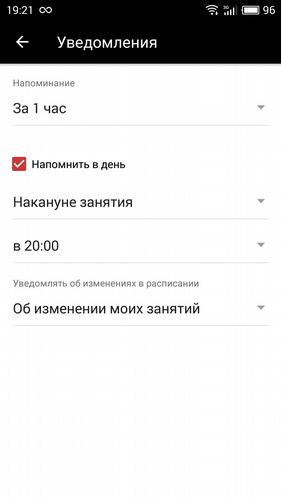 3.3 В выпадающем меню в разделе «Мои занятия» нажатием на шестеренку в правом верхнем углу вы попадаете в «уведомления» в котором ставите себе напоминание о предстоящей тренировке.